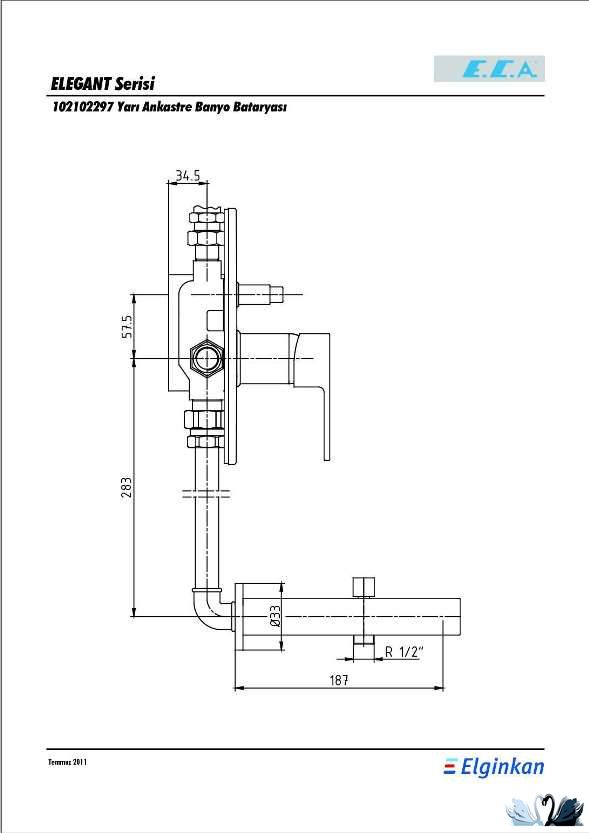 ECA Elegant 102101125 - Смeситель для душа, встраиваемый в стену, с изливом, комплект внутренней и внешней части.