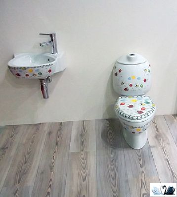 Мини - Унитаз для детей из коллекции Чёджук в магазине MARYSЯ. Указана рекомендуемая розничная цена за 1 шт. Для постоянных покупателей работает дисконтная система снижения цены! Бренд - Креавит. Материал - Керамика. Цвет - белый с цветным рисунком. Размеры (Д х Ш х В) - 560 х 290 х 645 мм. Характеристики: очень маленькие размеры, система антивсплеск. В комплекте - чаша унитаза, бачок, механизм смыва, сиденье с крышкой, крепления. Специальное изделие - для установки в детскую комнату, детский сад.