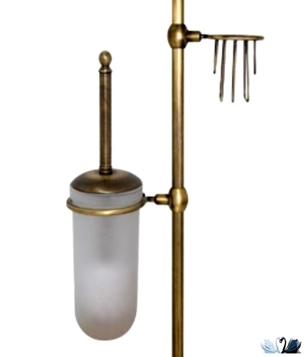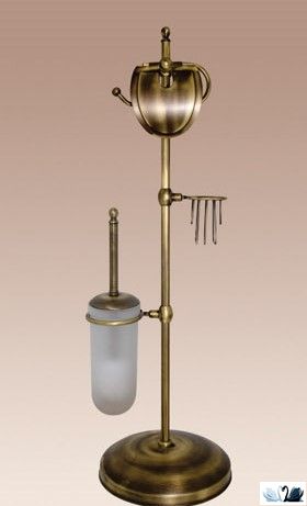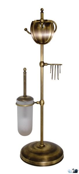 Напольный набор аксессуаров для туалетной комнаты с бумагодержателем, ершом для унитаза и держателем для освежителя. Бренд - Wildbad. Материал - Латунь с глянцевым покрытием. Цвет - состаренная бронза. Высота стойки 805 мм. Ширина основания - 250 мм. Стиль - Барокко. Форма - шары, соединяющиеся друг с другом, на круглом основанни. Размещение напольное.
