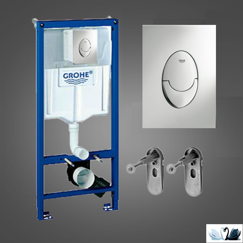 Grohe 38721001 Rapid SL 3 в 1 в сборе - Инсталляция для подвесного унитаза на раме c оригинальной кнопкой Skate Air хром. Страна: Германия. Бренд: Grohe. Материал рамы - сталь с антикорозийным порошковым покрытием, Материал бачка - пластик. Материал кнопки - безопасный пластик ABS. Размеры инсталляции (В х Ш х Г) 1200 х 500 х 150 мм с регулировкой конструкции по высоте и глубине. Цвет кнопки - хром глянец. Форма клавиш: овал. Комплект: рама с выдвижными ножками, большой бачок 9 литров, смывной пневматический механизм, пластиковые трубы, крепеж для унитаза, кнопка-панель смыва Skate Air. Особенности: Пневматический смывной механизм с тремя режимами слива: 2-х объёмный, старт/стоп, или непрерывный, Панель смыва с вертикальным монтажом, Оригинальный дизайн овальных клавиш панели в виде яйца, Хромированная стойкая поверхность клавиш GROHE StarLight, Подключение воды слева, справа и сзади DN 15, Специальная оболочка корпуса бачка из пенопласта, устойчивасть механизма к жесткой воде. Нагрузка до 400 кг.