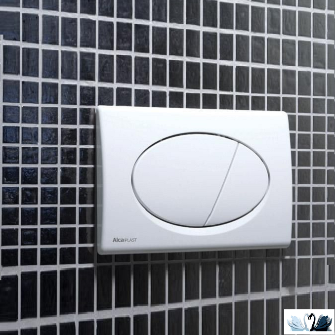 Бренд: AlcaPlast. Смывная клавиша - белого цвета, глянец.