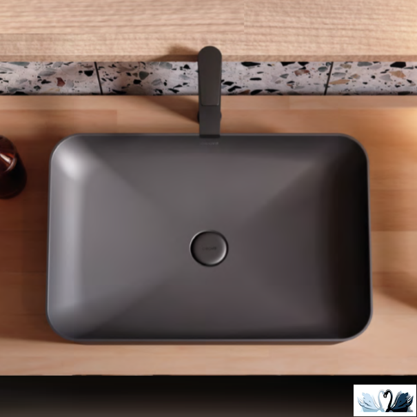 Цвет - графитовый, бледно-черный, темный антрацит. Форма раковины прямоугольная.