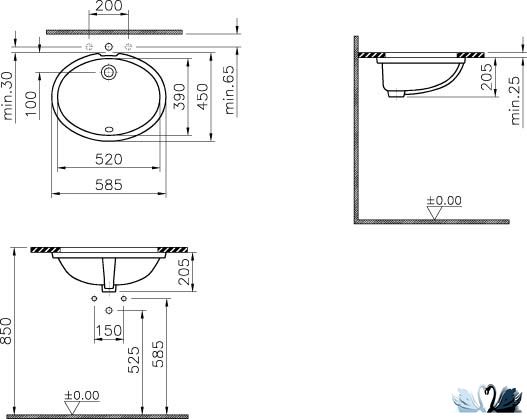 Сантехника фирмы Витра в магазине Marysя. Страна: Турция Артикул: 6069B003-0012 Цвет: Белый. Глубина: 59х45 см. Особенности: умывальник врезной, с чашей 52 см, для медицинских учреждений и общественных мест, овальной формы.