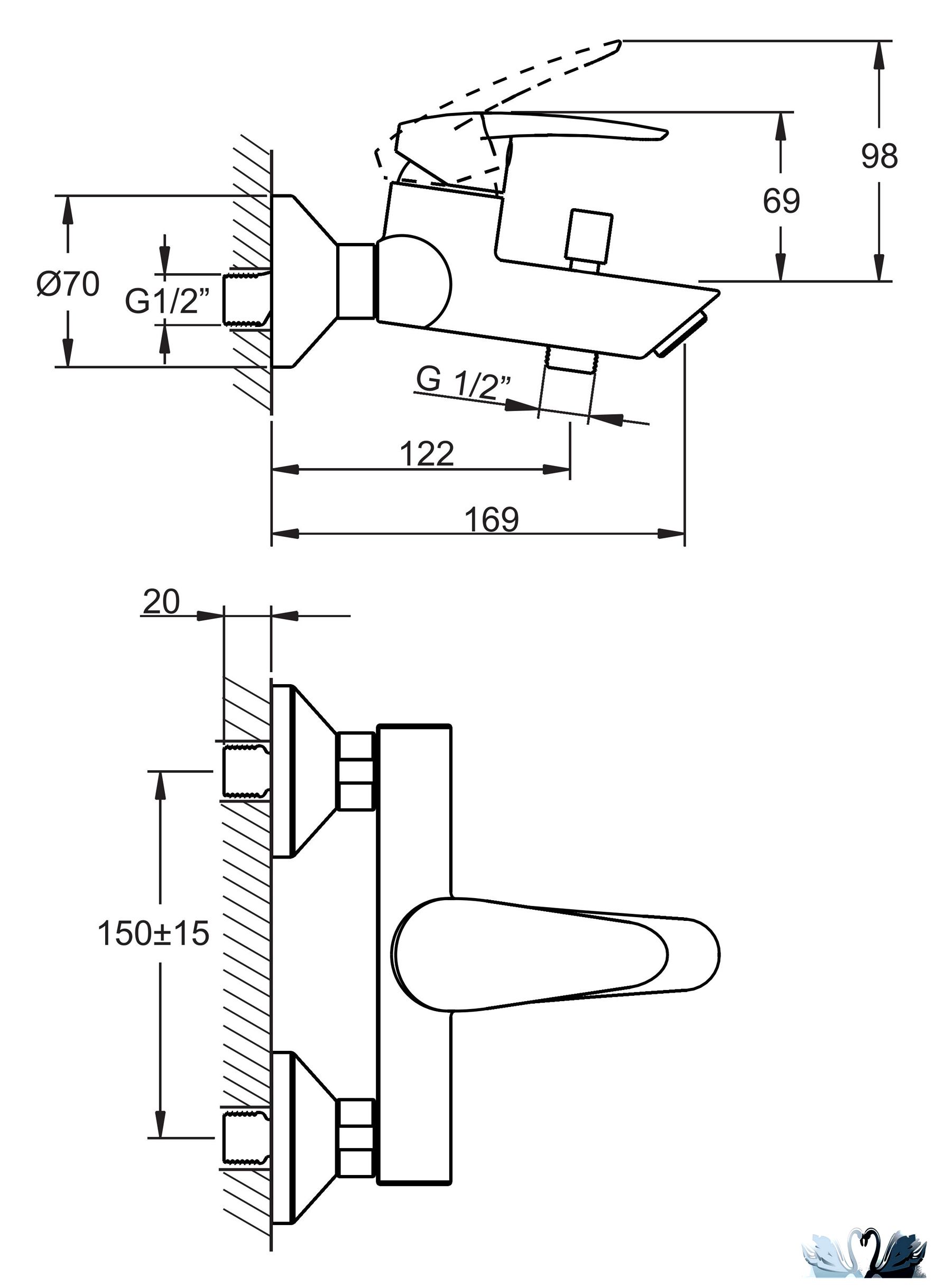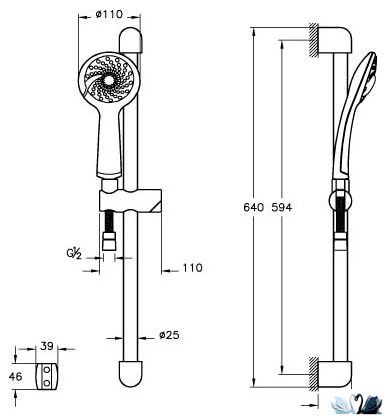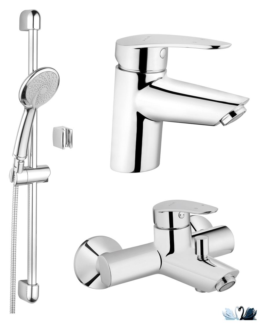 Dynamic S (арт. A49152EXP) - комплект (готовое решение), состоящий из трех смесителей: смеситель для ванны с коротким изливом, A40953EXP, смеситель для раковины, A40950EXP, штанга с душевым ручным гарнитуром.
