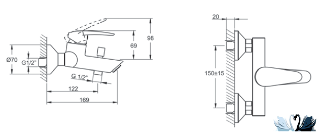 Управление: однорычажное. Монтаж: на стену. Клапан: керамический. Подводка: жесткая. Без душевого гарнитура. Монтажные отверстия: 2 отверстия. Отвод для душа G 1/2. Картридж: KEROX, Австрия. Оснащение: дивертор, эксцентрики, аэратор: s-pointer M 24 x 1. Донный клапан: нет. Подводка 1/2".