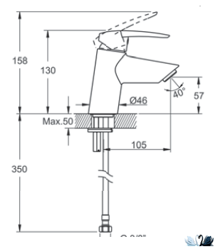 Высота смесителя: 158 мм, Высота излива: 57 мм. Длина излива: 105 мм. Глубина: 128 мм.