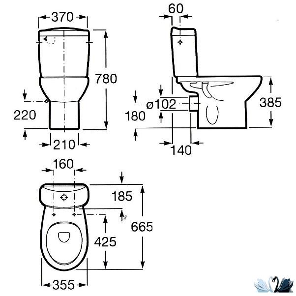 Размеры (Д х Ш х В) 665 х 355 х 780 мм. Высота чаши 385 мм