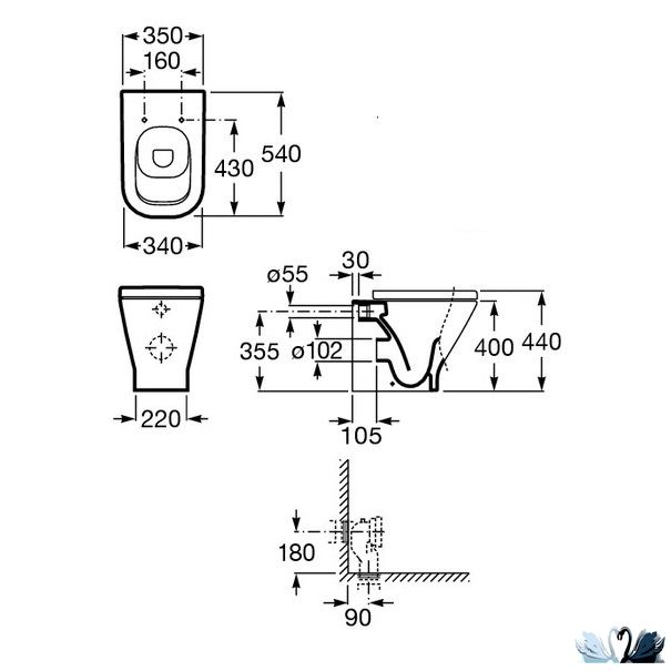 Roca The GAP, арт. 347477000 - приставной унитаз, напольный, с полным прилеганием к стене. Монтаж с инсталляцией, встраиваемым или навесным бачком обязателен!