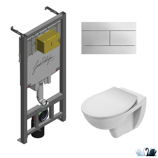 Jacob Delafon Patio rimless E21740RU-00 - комплект инсталляции с клавишей и подвесным унитазом с дюропластовым сиденьем с микролифтом.