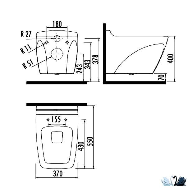 Главное - это использование природной тематики в дизайне изделия. Форма чаши унитаза прямоугольная. Линии и грани изделия четкие, подчеркивающие категоричность и силу. Стиль: Хай-тек, или Модерн.