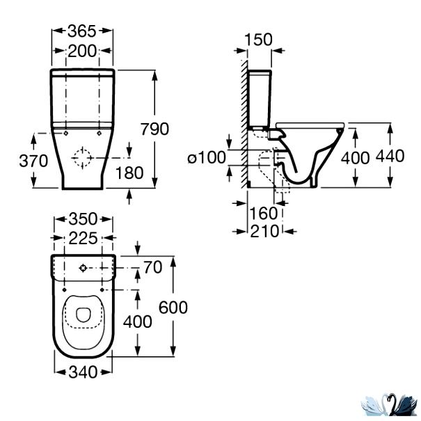 Размеры чаши (Д х Ш х В) 600 х 350 х 400 мм. Высота унитаза с бачком - 790 мм