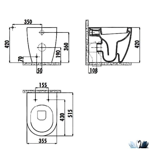 Унитаз монтируется с полным прилеганием к стене! Рекомендуется с системой инсталляции Creavit GR5003.01 или GR5001.01