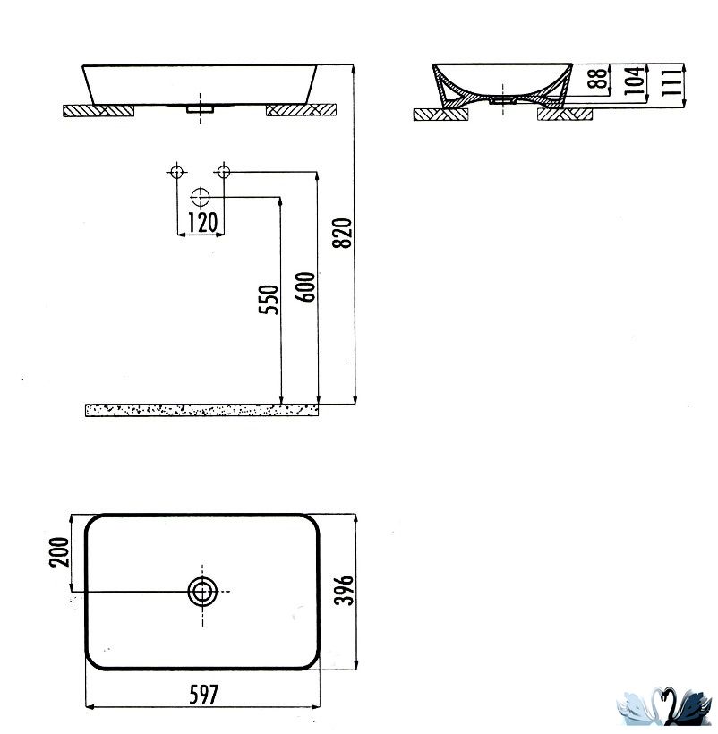 Особенности - Без отверстия для смесителя, ультра тонкая толщина бортика, стремящаяся к нулю, форма раковины и чаши прямоугольные с закругленными углами, пологие скаты бортов к сливному отверстию, ровная поверхность без "целлюлита".