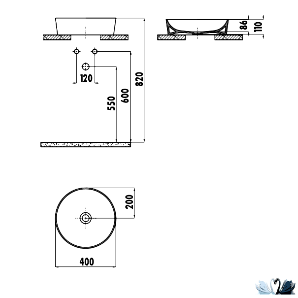 Особенности - Без отверстия для смесителя, ультра тонкая толщина бортика, стремящаяся к нулю, форма раковины и чаши круглые с закругленными углами, пологие скаты бортов к сливному отверстию, ровная поверхность без "целлюлита".