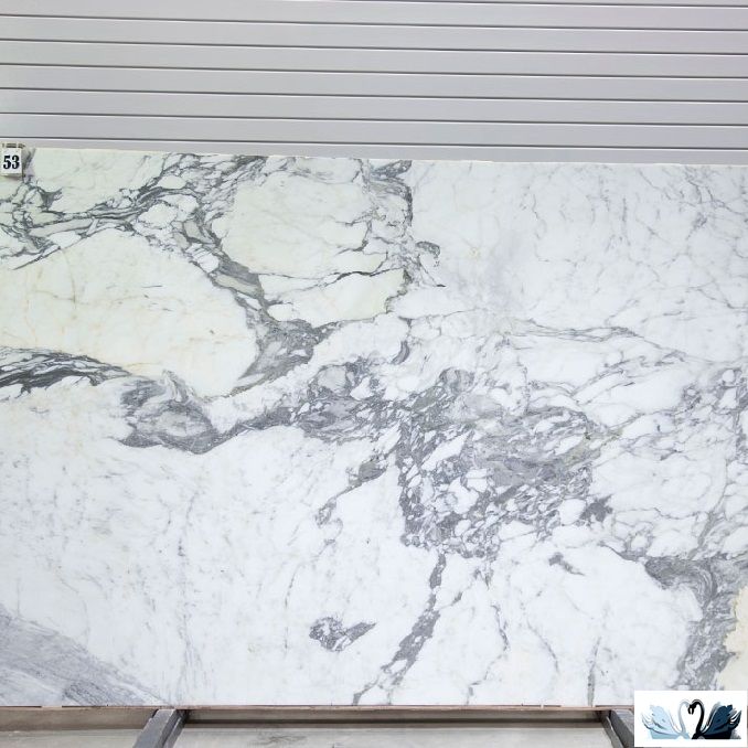 Цвет фона - белоснежный мрамор с сетью прожилок и разводов, напоминающий натуральный итальянский камень .