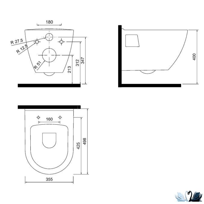 Размеры инсталляции (В х Ш х Г) 1120 х 510 х 125 мм, размеры унитаза (Д х Ш х В) 495 х 345 х 400 мм. Межосевое расстояние - 180 мм. Высота рамы инсталляции и ее расстояние от стены регулируется. Нагрузка до 400 кг!
