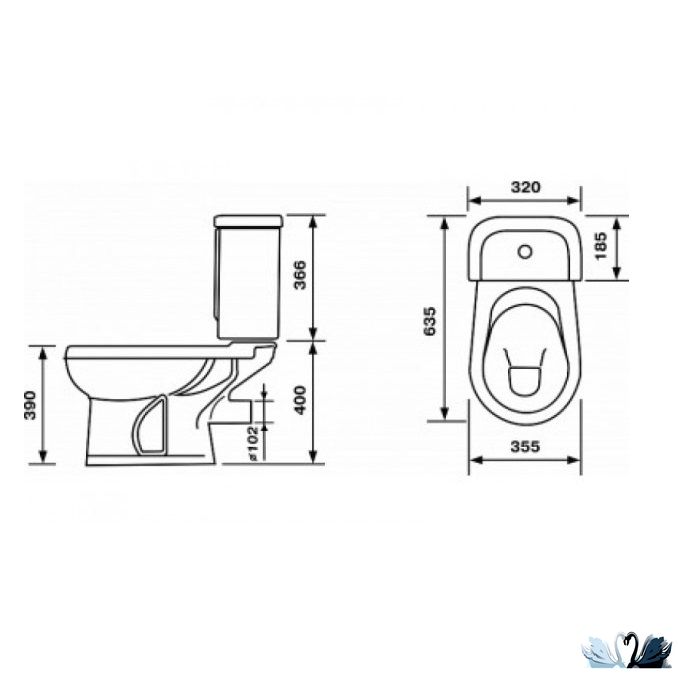 Особенности: овальный округлый дизайн чаши унитаза, глянцевая поверхность, смыв круговой струйный (душевой), система антивсплеск, высокий прямоугольный бачок, однокнопочная арматура фирмы Уклад, выпуск горизонтальный, подводка воды нижняя.