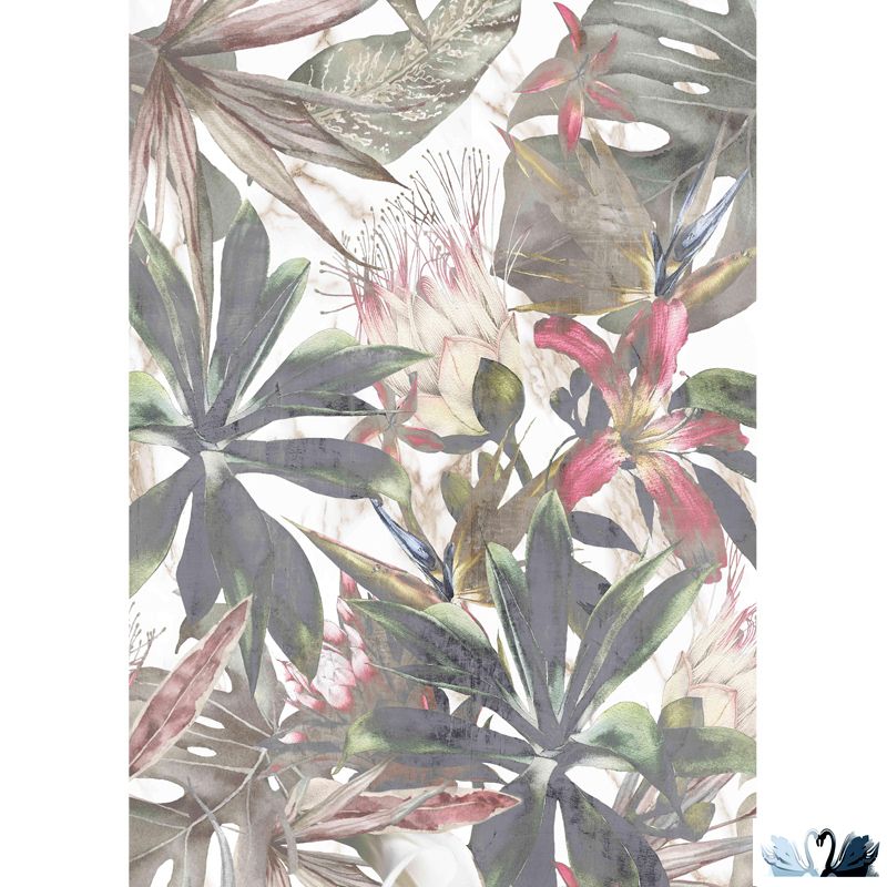 Creto Shine flower 30х90 (арт. ND_P0380) - керамическая плитка для стен с фоном под мрамор ярким рисунком тропических растений - декофон.