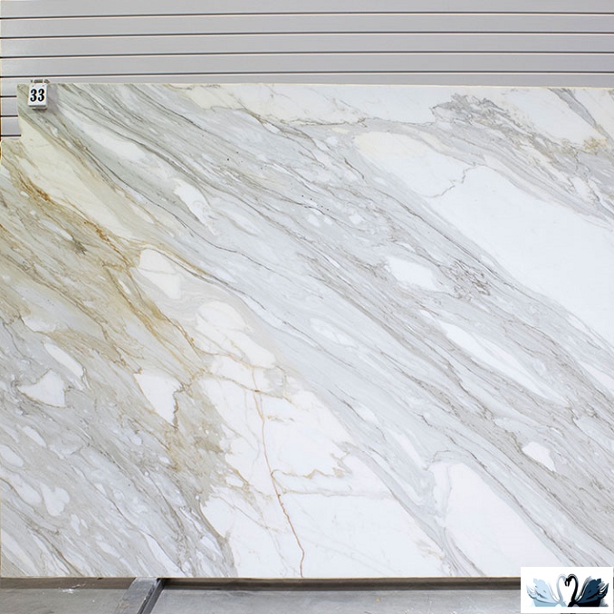 Цвет - белоснежный с серыми и бежеватыми прожилками, напоминающий итальянскую разновидность мрамора Calacatta Gold (Oro).