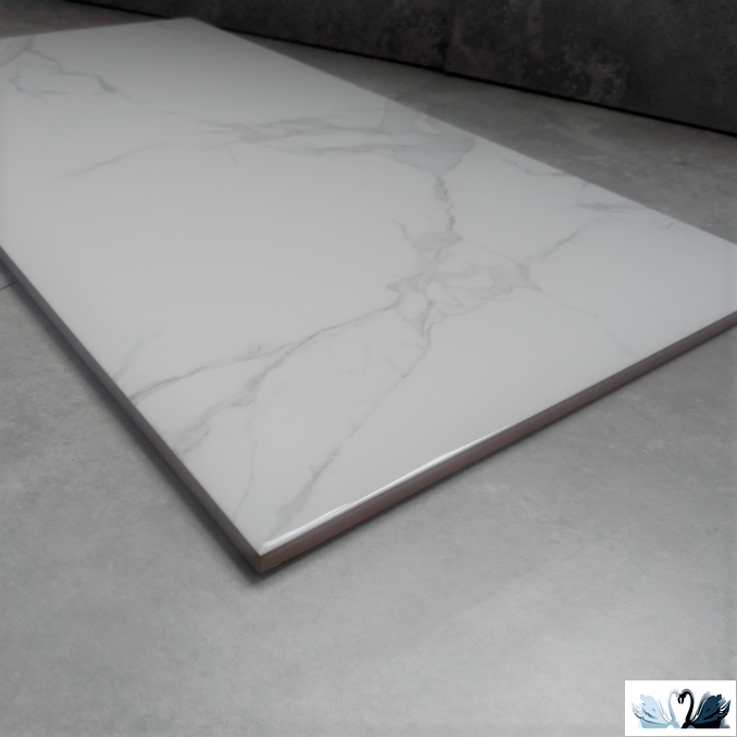 Цвет фона - белый с прожилками. Поверхность: гладкая, глянцевая.