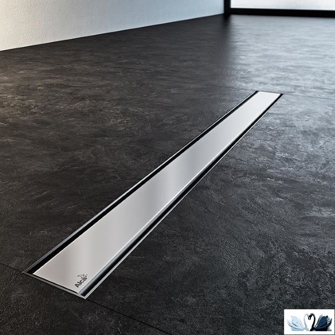 Главная особенность - двусторонняя решетка DOUBLE (Дабл или Дубле) - с одной стороны цельная матовая нержавеющая сталь с U-профилем, но есть возможность ее же установить и перевернув решетку с другой стороны и вставить плитку или любой водостойкий материал толщиной до 12 мм.
