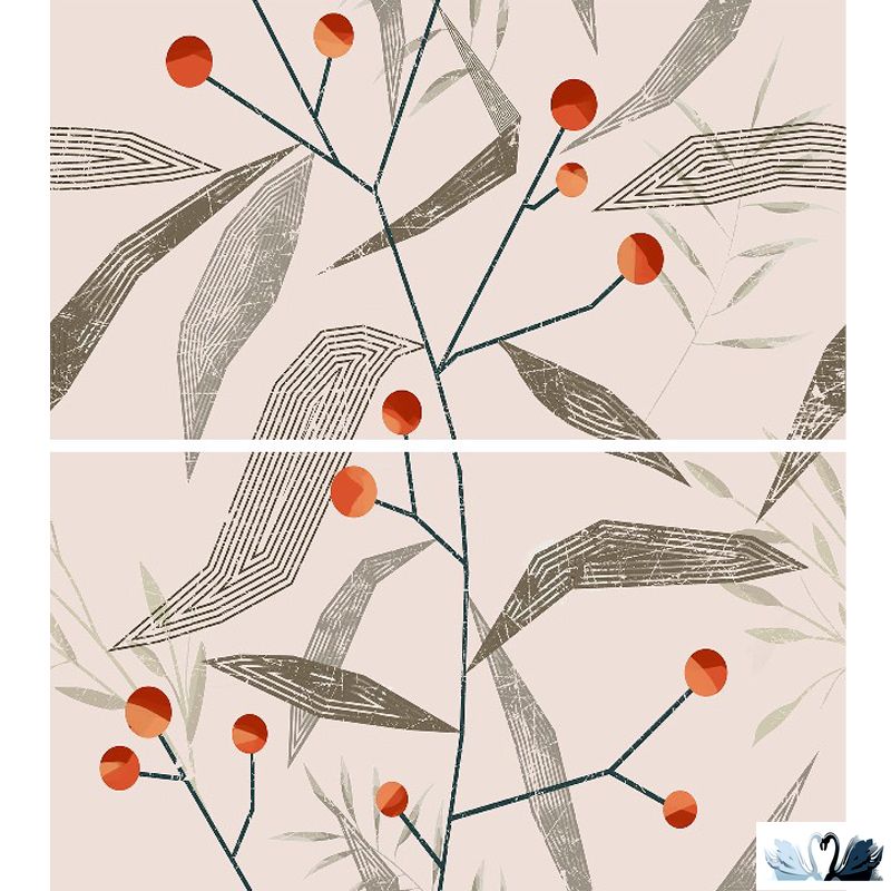 Цвет фона - бежевый. Рисунок - флора/фауна, нежные веточки калины в зимнюю пору.