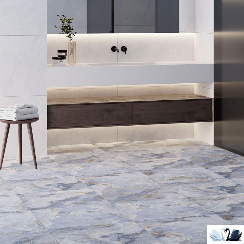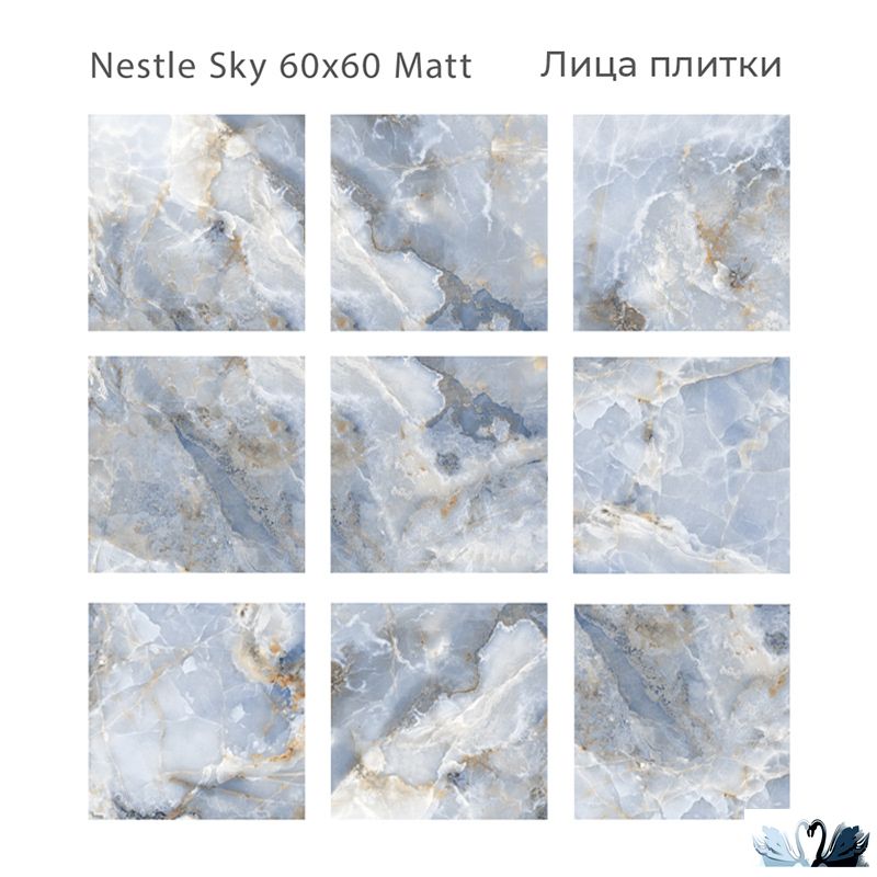 Керамический гранит под мрамор от фирмы Старо в магазине МАРУСЯ. Материал - керамика. Серия: Силк Нестле Скай Матт(Мэтт). Цвет - голубой, со множеством прожилок и разводов, имитирующий натуральный мрамор.