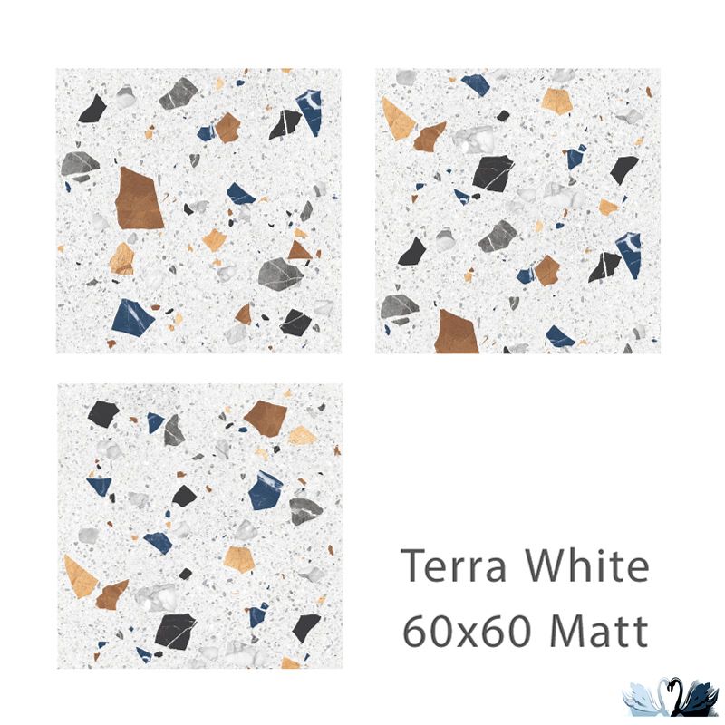Staro Silk Terra White Matt 60х60 см - керамический гранит квадратной формы с фоном под терраццо.