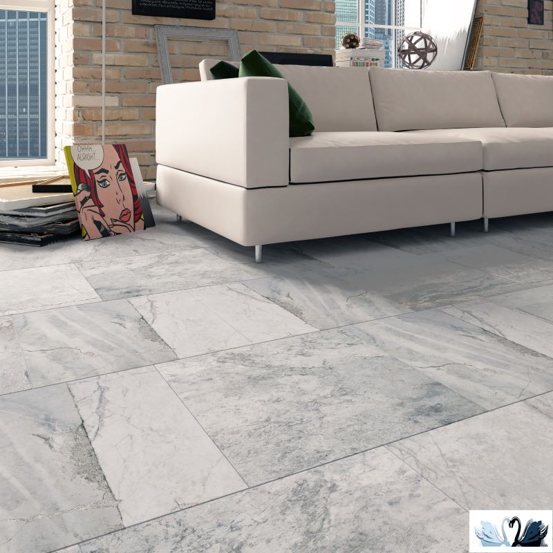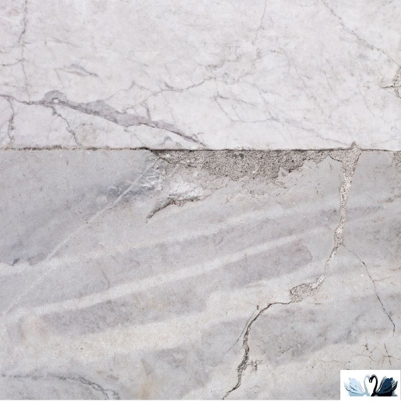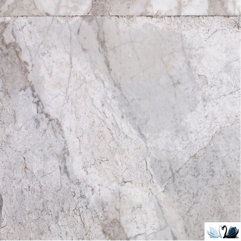 Цвет - светло-серый с белесыми, сероватыми и бежевыми прожилками и разводами, напоминающим натуральный песчаник с большим количеством глауконита.