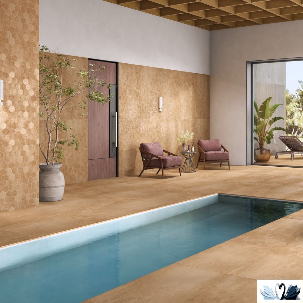 Технология изготовления предполагает использование жидкого металлического пигмента под верхним защитным слоем. При нагревании керамогранита достигается натуральная текстура цемента с матовым легким металлическим эффектом отделки.