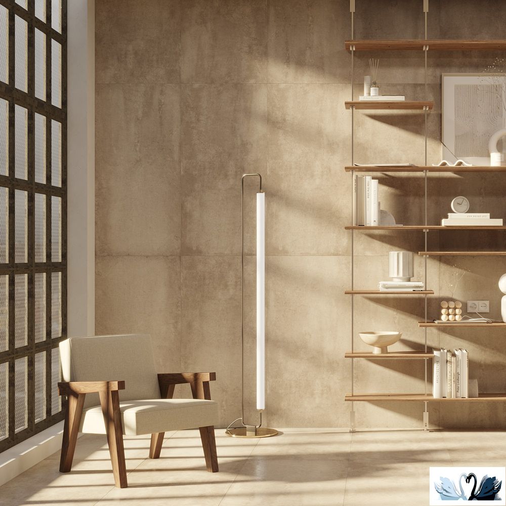 Технология изготовления предполагает использование жидкого металлического пигмента под верхним защитным слоем. При нагревании керамогранита достигается натуральная текстура цемента с матовым легким металлическим эффектом отделки.