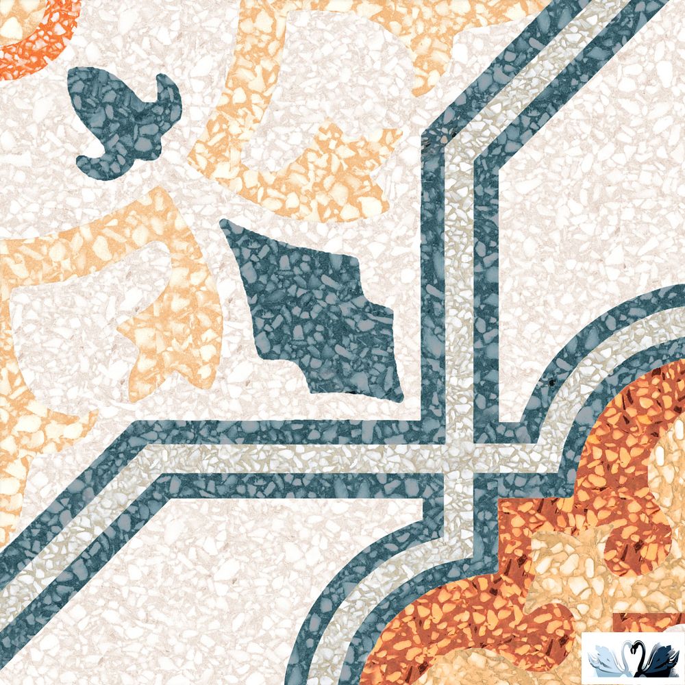 Фон - имитирует мозаичный пол из мраморной и каменной крошки, скреплённой цементом в единую поверхность, - венецианский терраццо (тераццо).