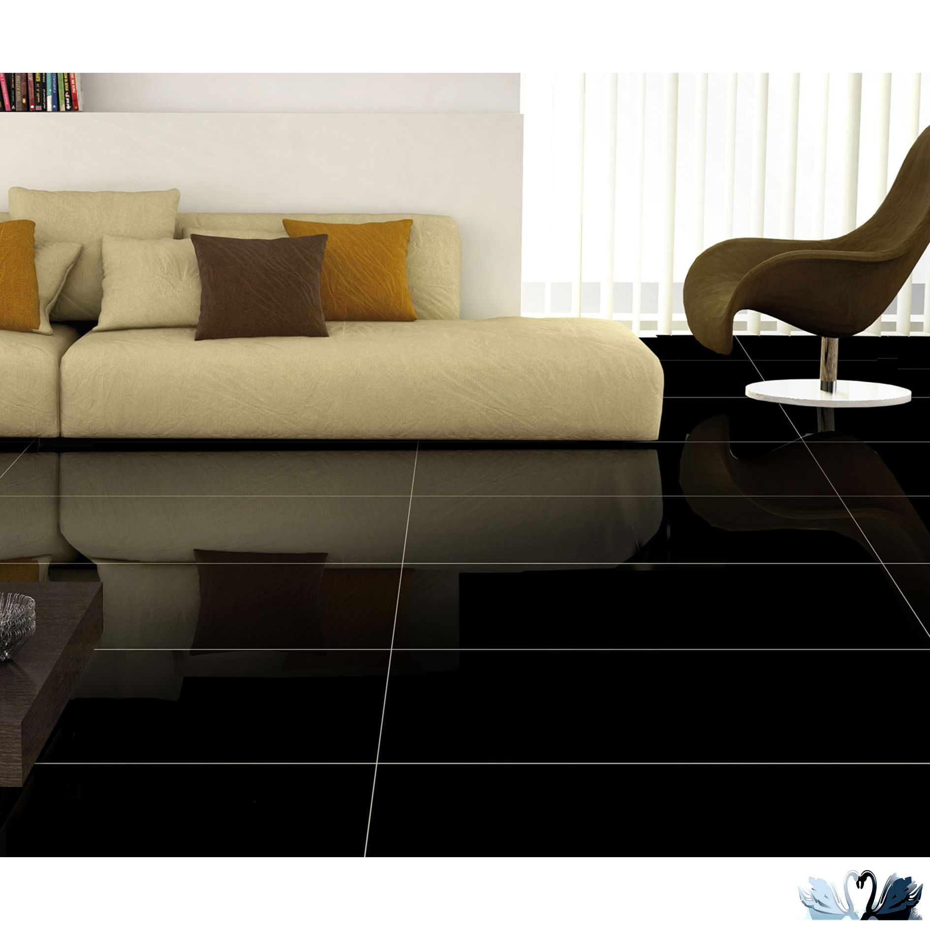 Керамический гранит моноколор от фирмы Старо в магазине МАРУСЯ. Материал - керамика. Серия: Моно Блэк Миррор Хай Глосс (Моно Блек Мирроу Хай Глосси).