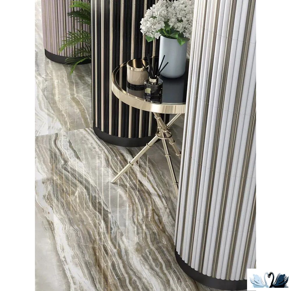 В этой серии представлен роскошный керамогранит крупного формата с рисунком под оникс. Ректифицированный керамогранит прямоугольной формы имеет идеальную геометрию и гладко отполированную поверхность.