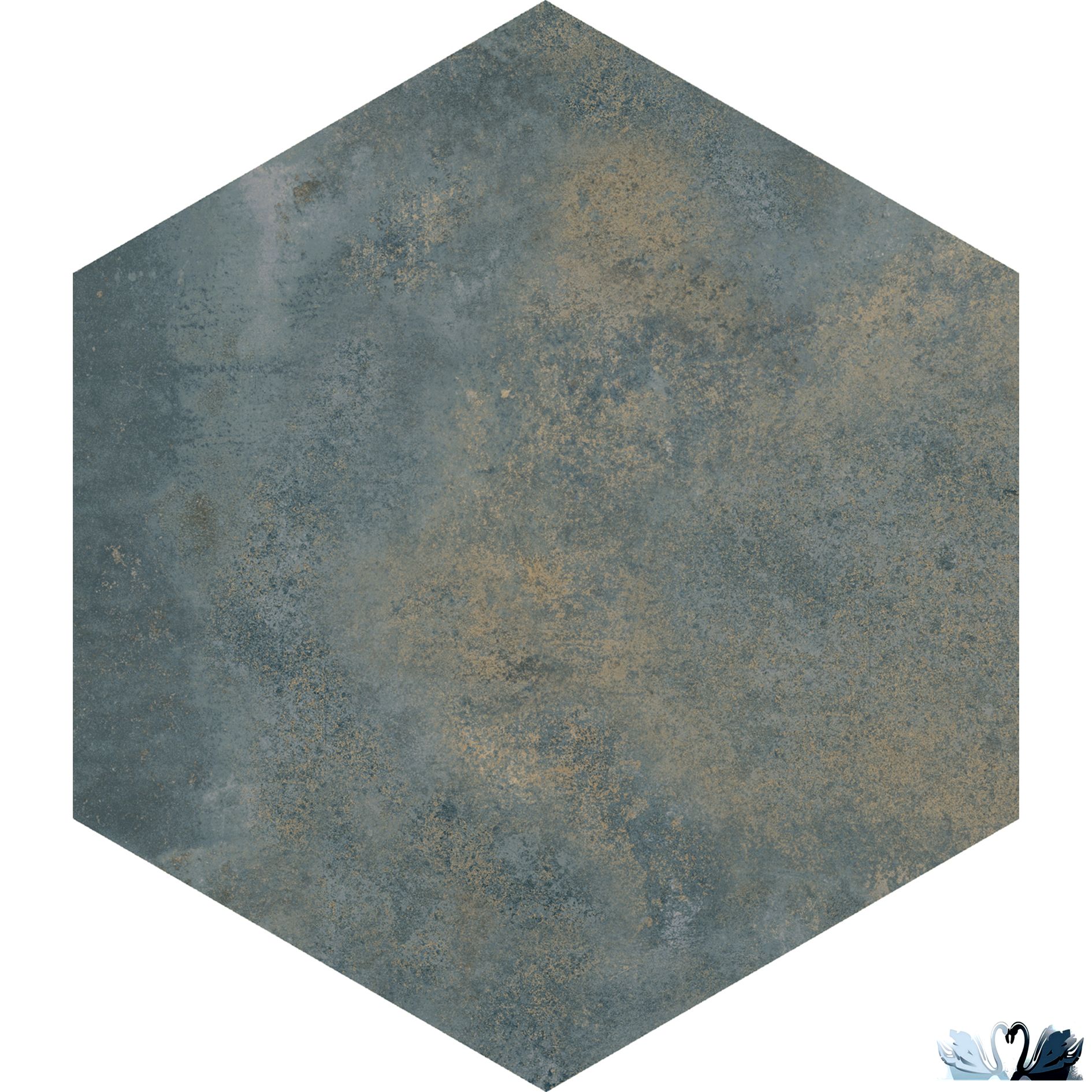 В серии представлен шестиугольный керамогранит с покрытием, которое предлагает моноколор в варианте «котто» — с неравномерным матовым цветом. Цифровая печать выполнена с добавлением блестящих чернил, что делает керамическое покрытие визуально ещё более интересным. Такое можно легко представить себе в качестве керамогранита для кухни, прихожей или летней веранды.