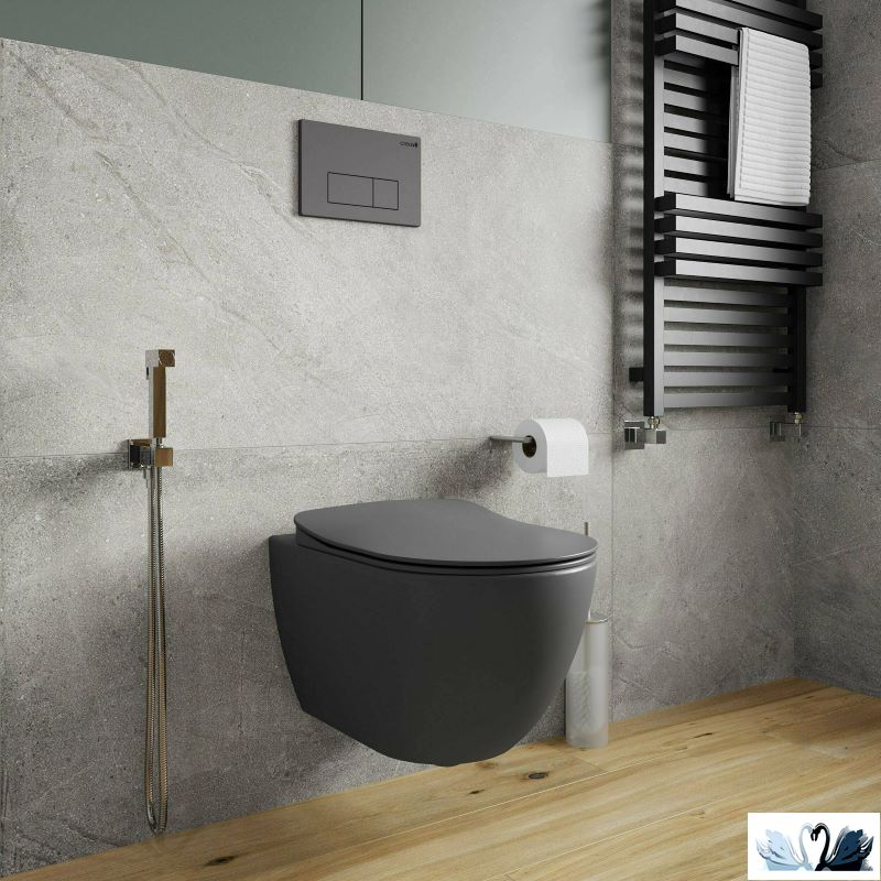 Подвесные унитазы с сидением Soft Close в магазине МАРУСЯ. Бренд - Креавит. Серия - Фри Антрацит. Указана цена за комплект 1 шт.
