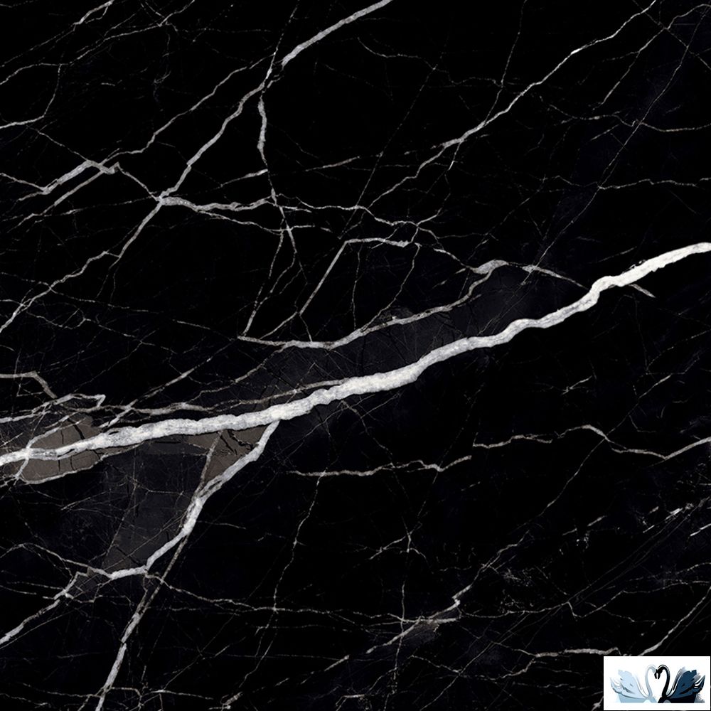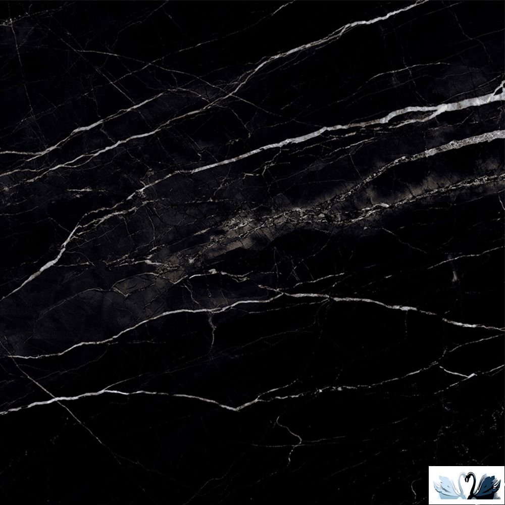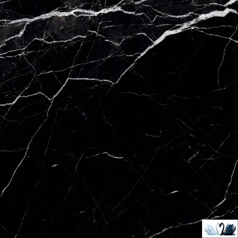 Цвет фона - черный. С россыпью акварельных прожилок, великолепная имитация классического натурального мрамора глубокого черного цвета.