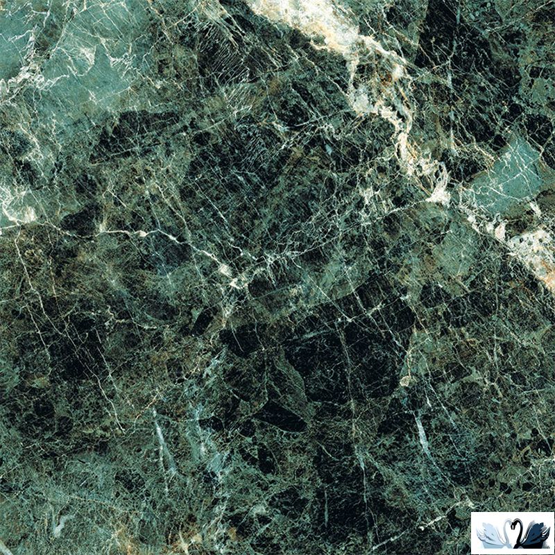 Цвет фона - зеленый. С россыпью акварельных прожилок, великолепная имитация классического натурального мрамора глубокого зеленого цвета.