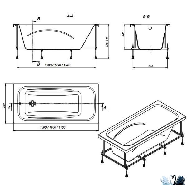 Цена указана только за емкость ванны. Панели, сифон, каркас приобретаются отдельно.