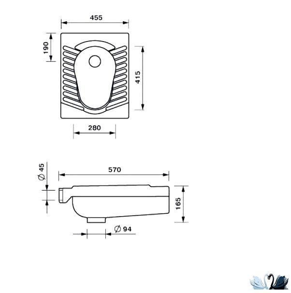 Унитаз напольный Чаша Генуя, арт. 43301100302 - Встраиваемый в пол турецкий унитаз 50 х 60 см.