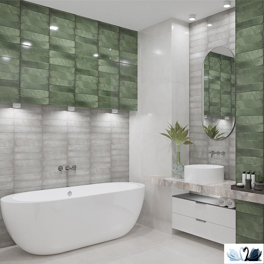Azori Bricks Green 31,5 х 63 см - керамическая плитка для стен с фоном под бетон.