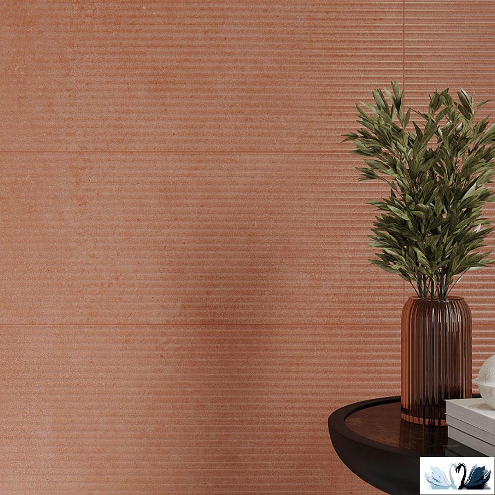Цвет - медный, терракотовый, красно-коричневый, кирпичный. Рельеф - полосы.