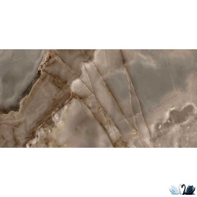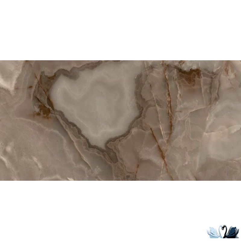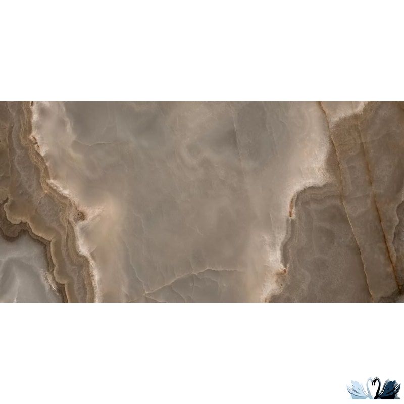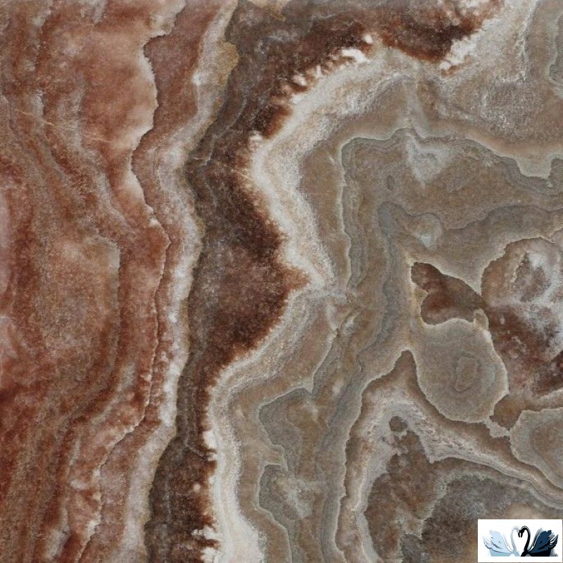 Цвет фона - коричневый с тонким узором контрастных бежевых и графитовых прожилок, и облачными разводами ванильного, шоколадного цвета, напоминающим разновидность итальянского оникса Onyx Viola Black