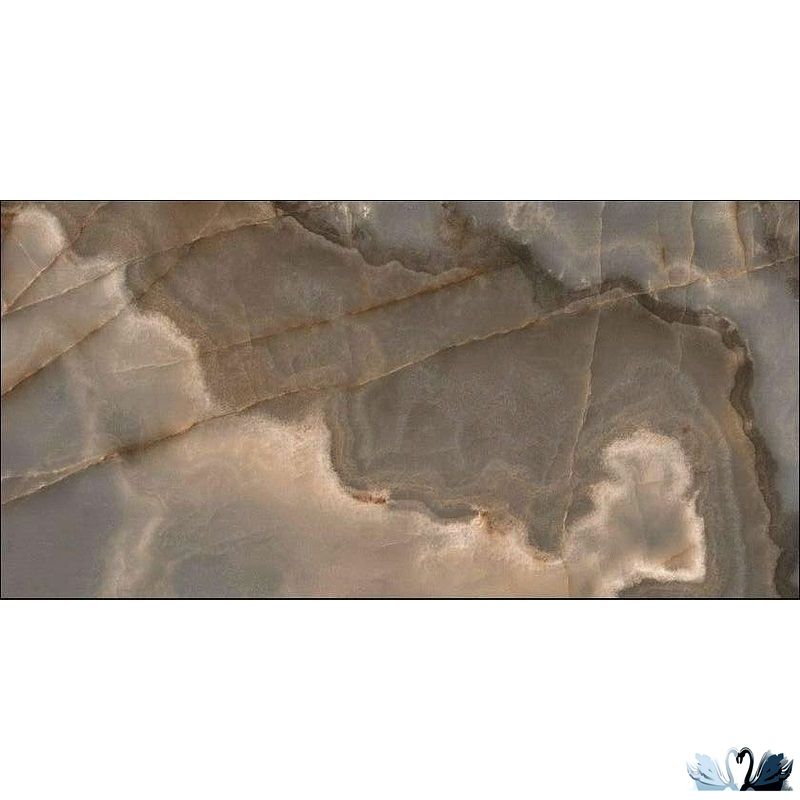 Фоновая текстура - имитация итальянского оникса Onyx Viola Black, на наш взгляд. Дизайнеры взяли часть рисунка природного камня, насытили его сетью прожилок, получи дизайн керамогранитав очень похожий на естественный. Посмотри фото и сравни!