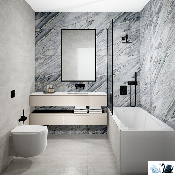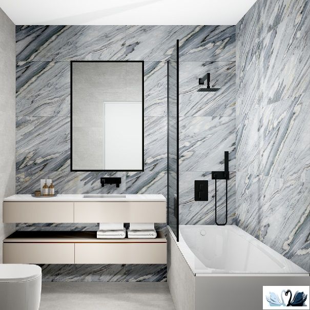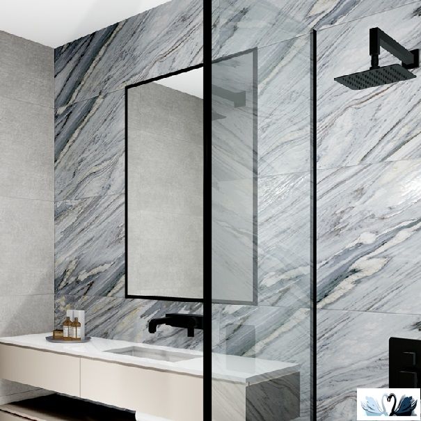 Цвет - серый с экспрессивным узором прожилок и разводов, напоминающим итальянский натуральный мрамор Cipollino Ondulato.