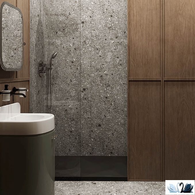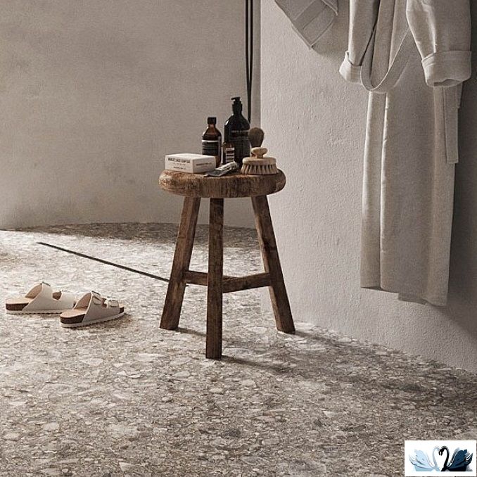 К нему же нас относит и название серии - Герда - героиня сказки "Снежная королева". В серию Granite Gerda входят 4 вида крупноформатного керамогранита под терраццо разных оттенков (белый, серый, темно-серый, черный оливковый) и два вида декоративных варианта Герда Фестиваль и Герда Карнавал.