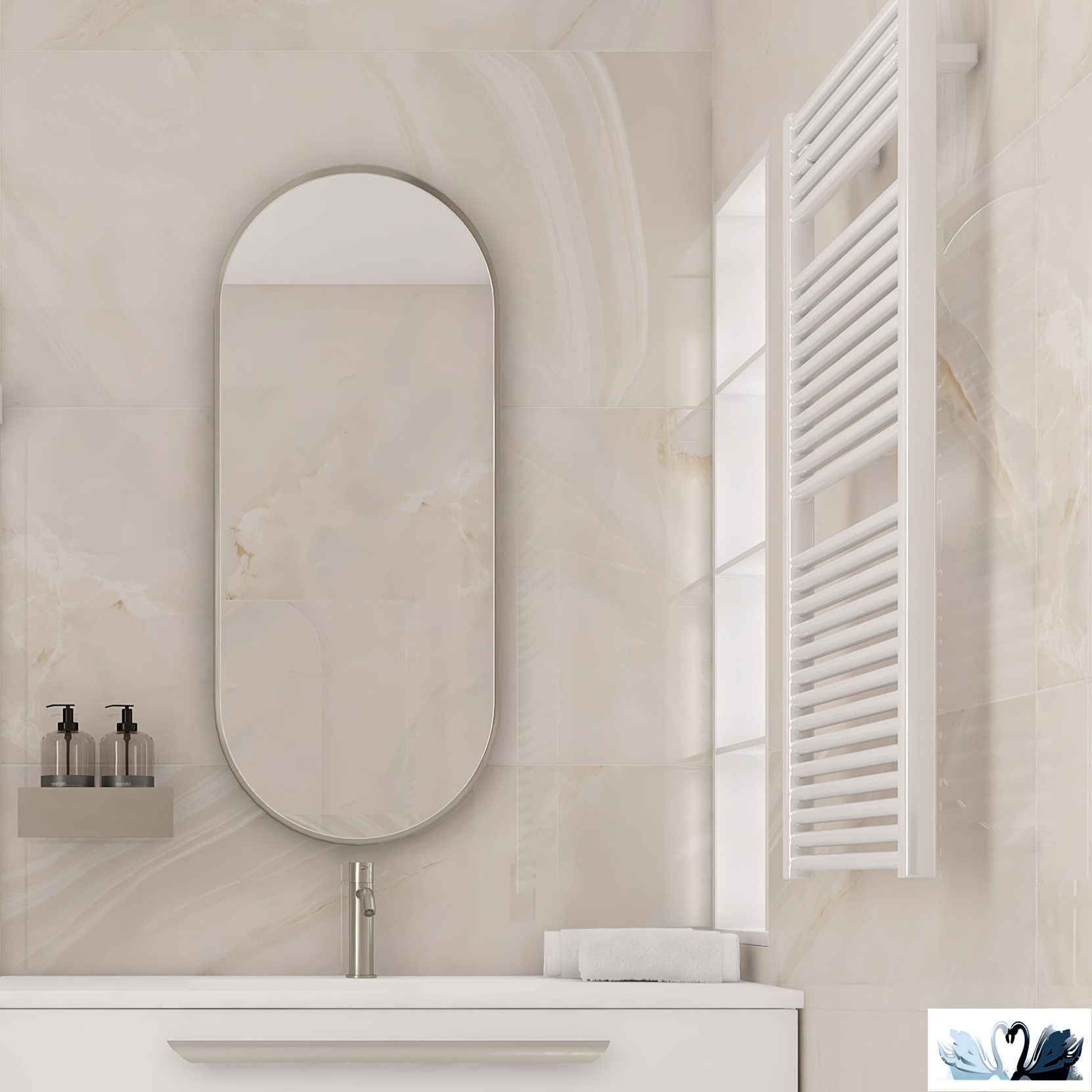 Колллекция керамической плитки Оникс куин криим с ненавязчивой узорчатостью минерала делают дизайн интерьера элегантным, легким и воздушным.