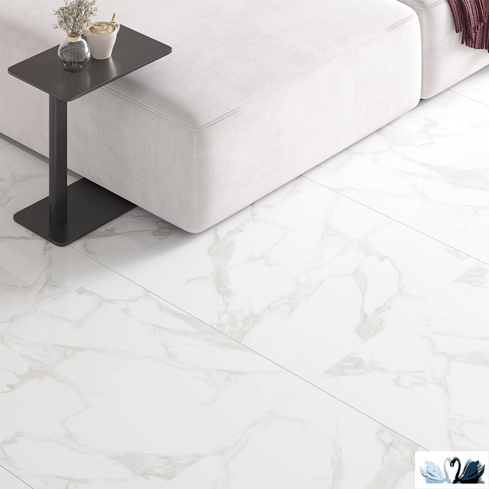 Italica Statuario Perfect Silver 60 х 120 см полированный - керамический гранит прямоугольной формы с фоном под природный мрамор.