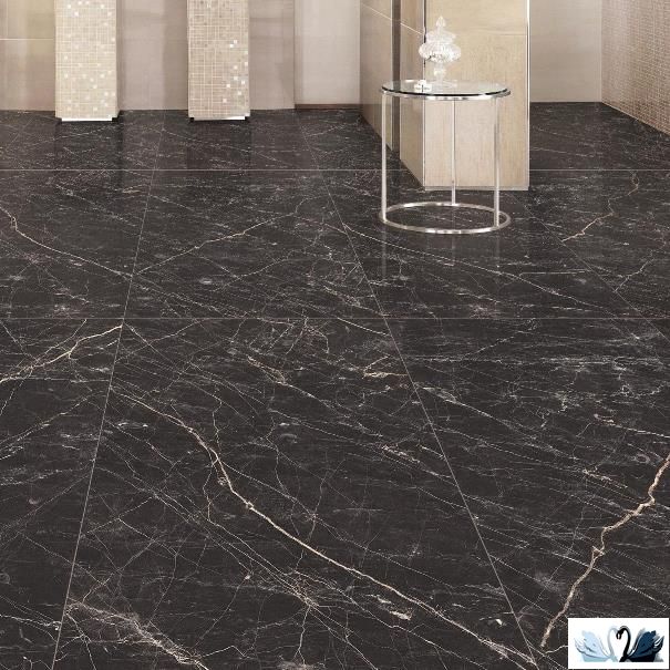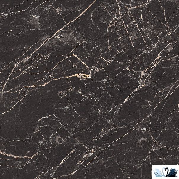 Laparet Black Arkadia 60 х 60 см черный полированный - керамический гранит квадратной формы с фоном под мрамор.