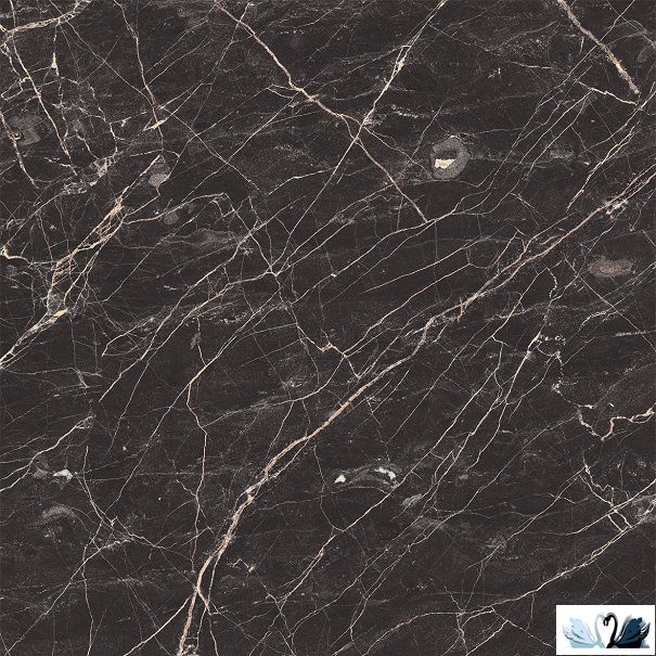 Фоновая текстура - имитация турецкого мрамора Bruno Perla с анрацитовым черно-шоколадным фоном и дымчато-бежевыми зернами и белесыми прожилками. Имеется несколько разнообразных штамповых принтов плитки.